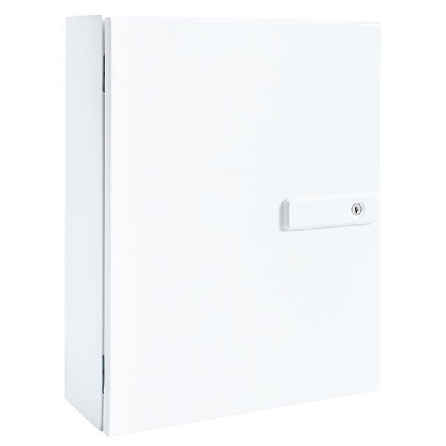 The Gallagher SMB Cabinet is a secure steel cabinet with mounting points for a Controller 6000 or Half-Footprint Mounting Plate, and one Full-Footprint Mounting Plate. The cabinet comes equipped with a non-Master keyed security lock (8025 series), with covered ducts and multiple cable entry options to simplify cabinet wiring.